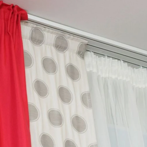 Три ряда позволяют одновременно использовать как лёгкие тюли, так и плотные шторы, что позволяет создавать разнообразные комбинации и регулировать уровень освещения.