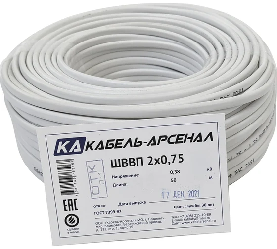 Технические характеристики Кабель-Арсенал ШВВП 2x0,75 ГОСТ - 100 м 55333