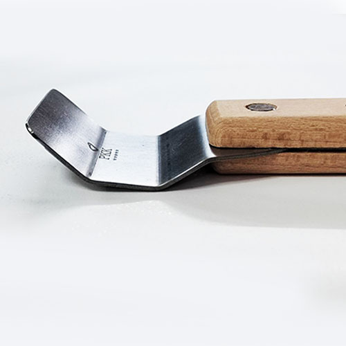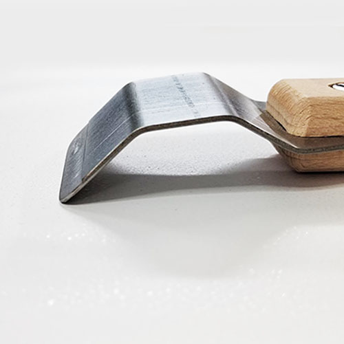 Применяется для заправки плёнки в ступенчатые багеты или гипсокартонные короба при устройстве многоуровневых конструкций. Шпатель со средней ручкой и двумя изгибами используется для парящих/теневых потолков, когда зазор между стеной и профилем очень маленький.