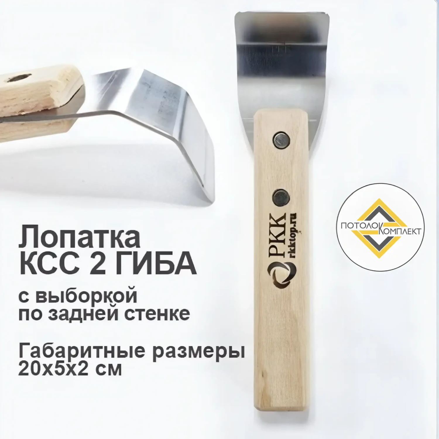 Имеет трапециевидную рабочую часть с тремя гибами по 45º. Применяется для заправки плёнки в ступенчатые багеты или гипсокартонные короба при устройстве многоуровневых конструкций. Шпатель со средней ручкой и двумя изгибами используется для парящих/теневых потолков, когда зазор между стеной и профилем очень маленький. Эргономично лежит в руке. Изгиб металлической части спроектирован так, чтобы удобно было заправить потолок не повредив обои и потолок. Данный инструмент для монтажа натяжных потолков подойдет, как опытному специалисту, так и новичку без опыта. Крепление деталей лопатки выполнено винтовыми соединениями. Необработанная лакокрасочными покрытиями ручка прочно располагается в руке монтажника.