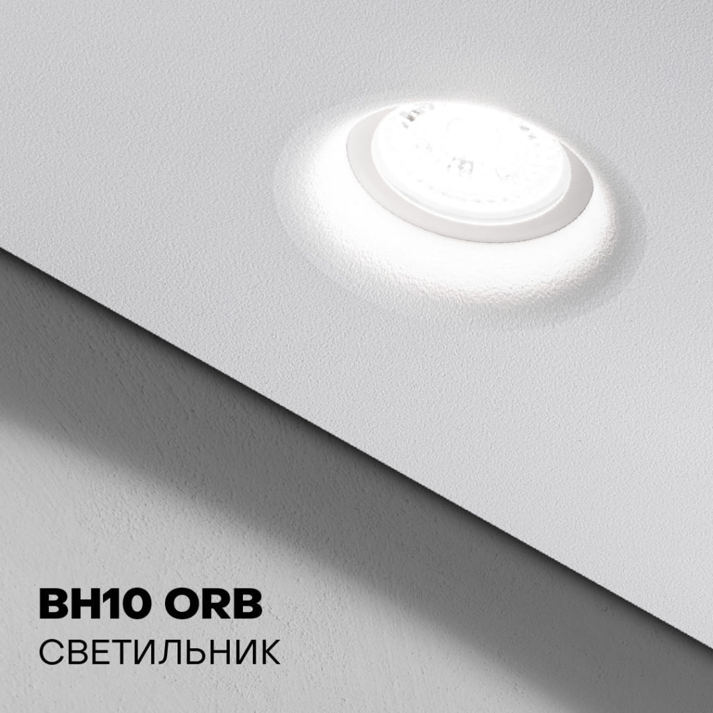 BH10 ORB устанавливается по инновационной технологии «ВТЯЖКА», благодаря которой эластичное натяжное полотно втягивается внутрь и облегает корпус светильника.