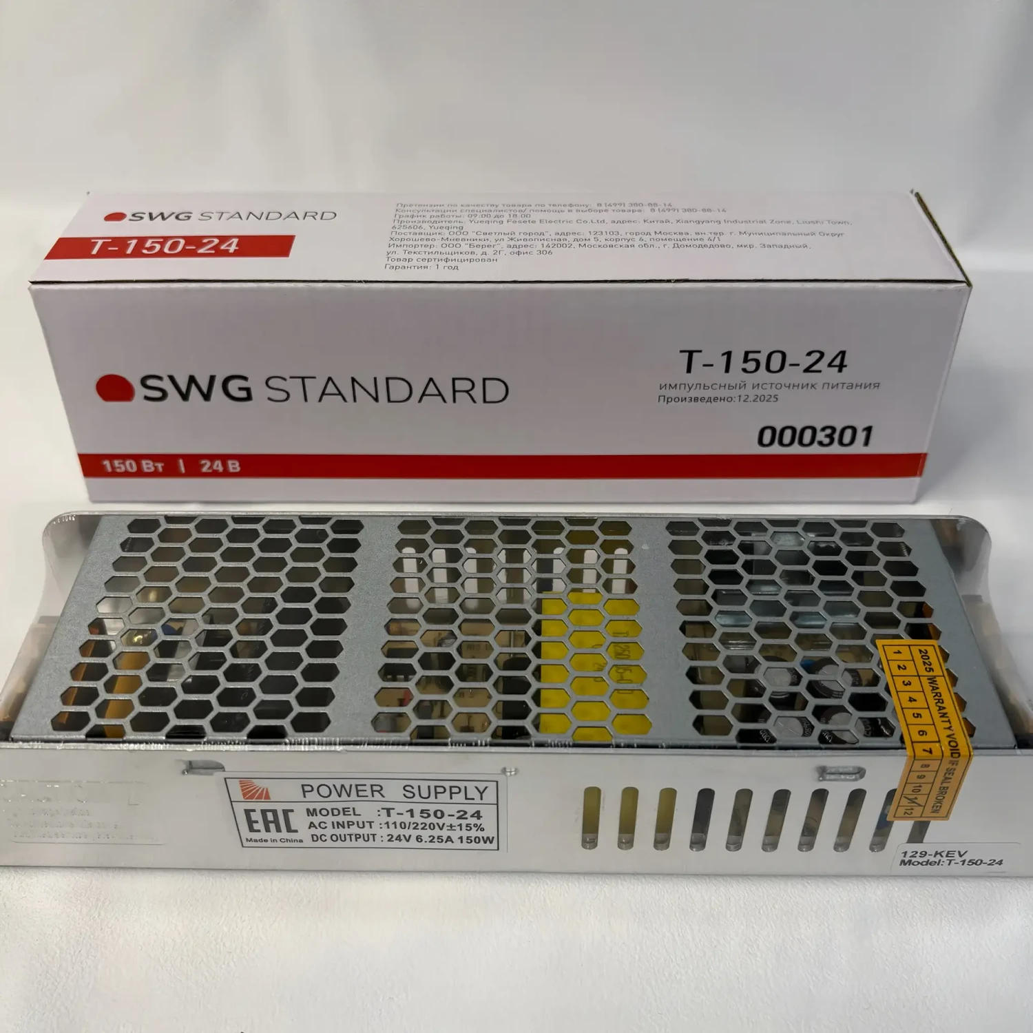 Блок питания для светодиодных лент компактный (узкий), 150 W, 24V, T-150-24