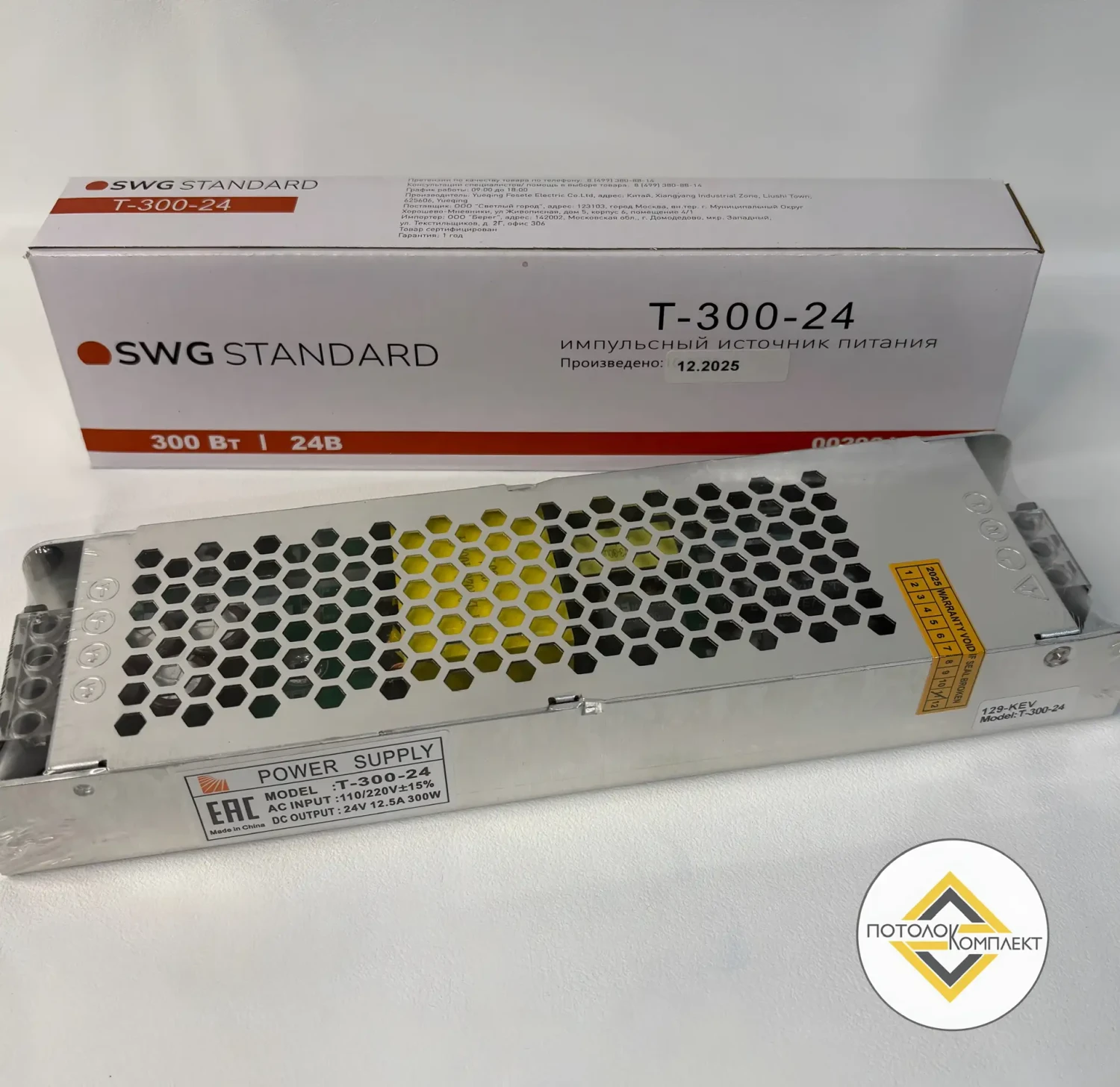 Компактный (узкий) блок питания SWG Standard серии T предназначен для питания светодиодных лент от сети 220–240 В с выходом 24 В. Модель T-300-24 рассчитана на мощность 300 Вт и подходит для проектов, где важно разместить источник питания в ограниченном пространстве.
