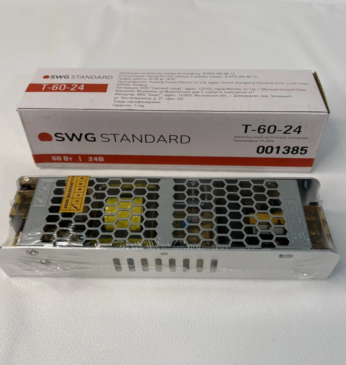 Габариты корпуса: 160×40×30 мм. Коэффициент мощности >0,6, КПД — 85%. Гарантия производителя — 1 год.