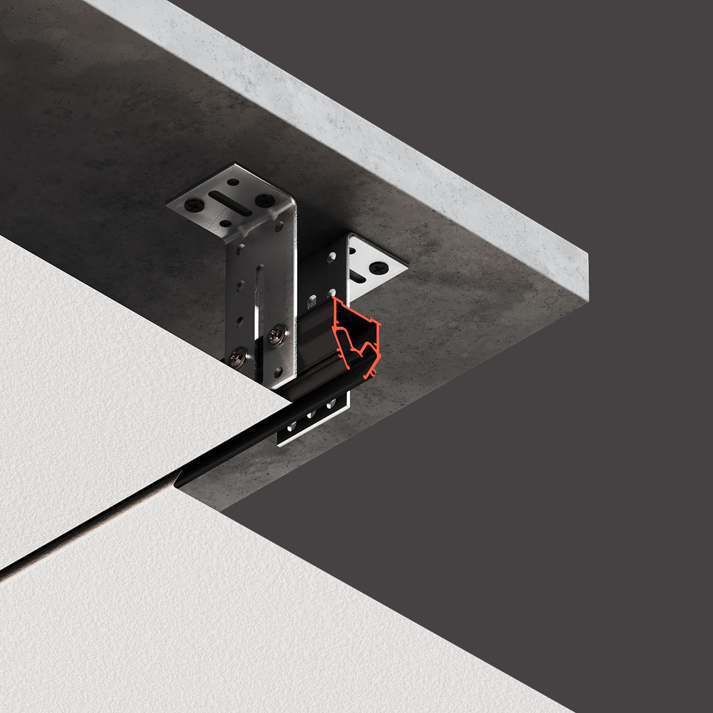 Разделительный профиль Flexy EURO 04 с теневым зазором для натяжных потолков с гарпунной системой крепления полотна.