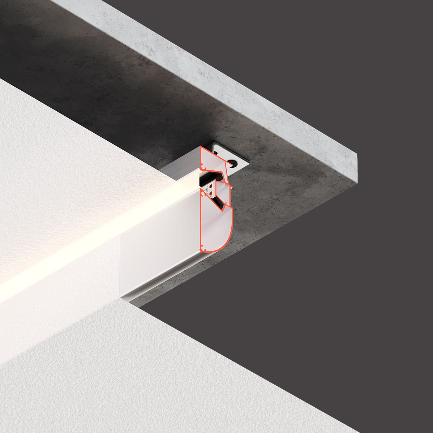 С полкой для светодиодной ленты и светорассеивающей вставкой.