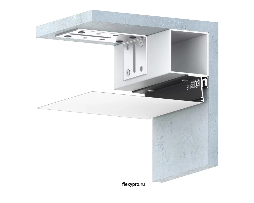 Потолочный профиль Flexy EURO 03 с теневым зазором для натяжных потолков с гарпунной системой крепления полотна.