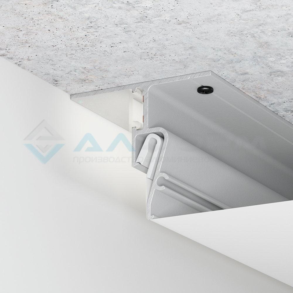 Алюминиевый профиль для контурной подсветки по технологии «Парящий потолок» Крепление к потолку